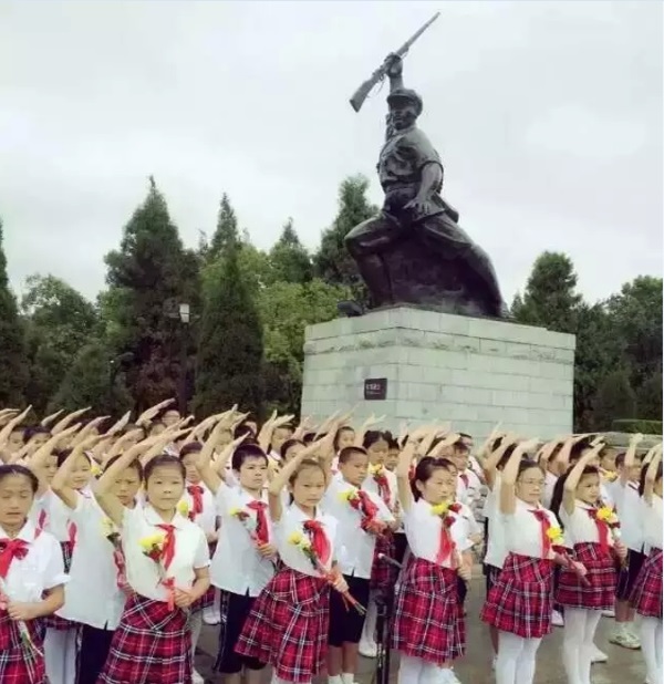 默哀畢,少先隊(duì)員們獻(xiàn)唱《我們是共產(chǎn)主義接班人》。