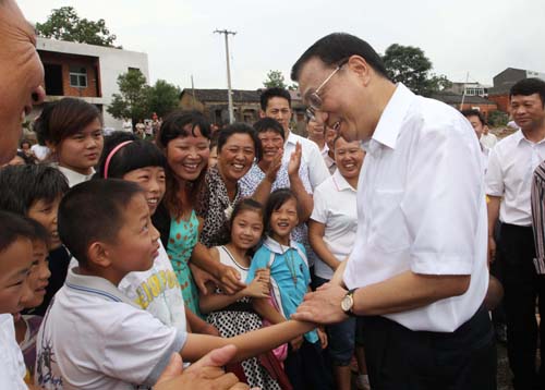 這是7月14日,李克強來到地處大別山區(qū)的紅安縣陳升廟村看望慰問困難群眾,了解他們的生活情況。新華社記者 劉衛(wèi)兵 攝