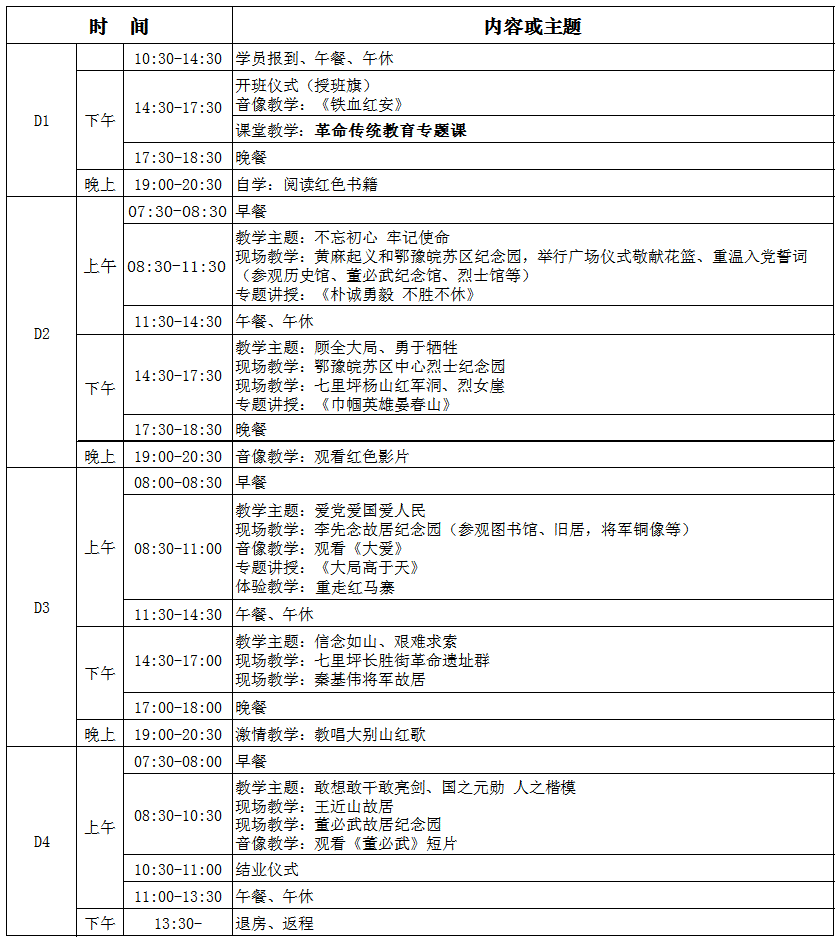 湖北大別山革命傳統(tǒng)教育基地四天班課程安排