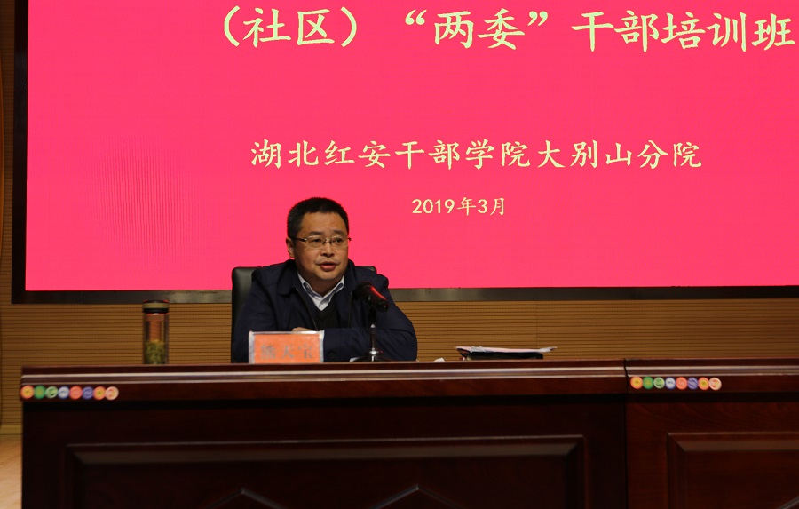 2019年3月29日—31日,武漢市新洲區(qū)雙柳街村(社區(qū))“兩委”干部培訓(xùn)班在湖北紅安干部學(xué)院大別山分院舉辦,來(lái)自雙柳街各村(社區(qū))260名黨員干部參加了培訓(xùn)學(xué)習(xí)。30日上午,新洲區(qū)雙柳街黨工委書(shū)記鄧輝,雙柳街道辦事處主任郭國(guó)清,湖北紅安革命紀(jì)念地管理中心黨委委員、副主任劉曉軍出席開(kāi)班儀式。開(kāi)班儀式上,劉曉軍副主任首先對(duì)學(xué)員的到來(lái)表示歡迎,簡(jiǎn)要介紹了大別山分院以及紅安的基本情況,他強(qiáng)調(diào),此次培訓(xùn)班新洲區(qū)第二個(gè)街村(社區(qū))“兩委”干部培訓(xùn)班,學(xué)院將一如既往、全力以赴做好教學(xué)安排及后勤保障等工作。