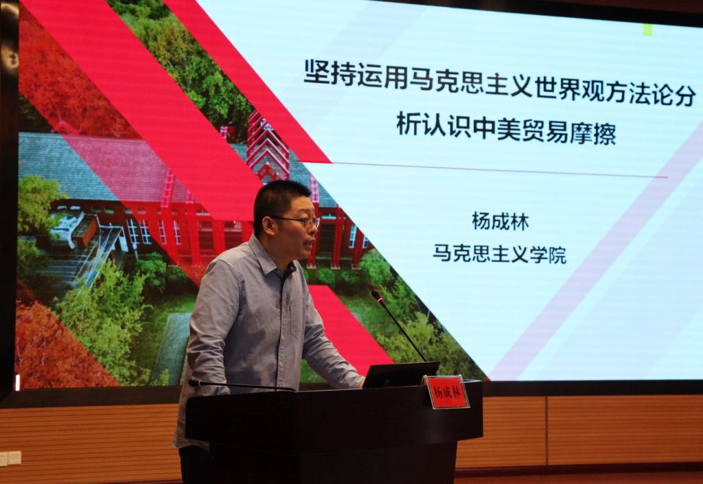 來自馬克思主義學院的4位教師為學員們帶來系列精彩報告。呂宏山以“辯證唯物主義的體系、歷史演變與基本內(nèi)容”為主題,從辯證唯物主義在馬克思主義整體結(jié)構(gòu)中的地位、辯證唯物主義的學術(shù)史演變、辯證唯物論、唯物辯證法,以及實踐與認識的辯證關系等方面梳理概念,幫助學員理解辯證唯物主義。楊成林以“堅持運用馬克思主義世界觀方法論分析認識中美貿(mào)易摩擦”為主題,闡釋了如何運用馬克思主義世界觀和方法論辯證地看待中美貿(mào)易摩擦,認清中美貿(mào)易摩擦背后的實質(zhì)。李揚為學員們講授“研讀經(jīng)典的意義和方法論原則”,強調(diào)研讀馬克思主義經(jīng)典著作要原原本本學,要深入學、持久學、刻苦學,要帶著問題學、聯(lián)系實際學。趙建建帶來了研讀經(jīng)典著作的實例分析,以《反杜林論》為例,從找問題、找線索、找架構(gòu)、找?guī)褪炙膫€方面著手,闡釋了文章的標題、序言及目錄中展現(xiàn)的中心問題、問題起源及敘述架構(gòu)等。