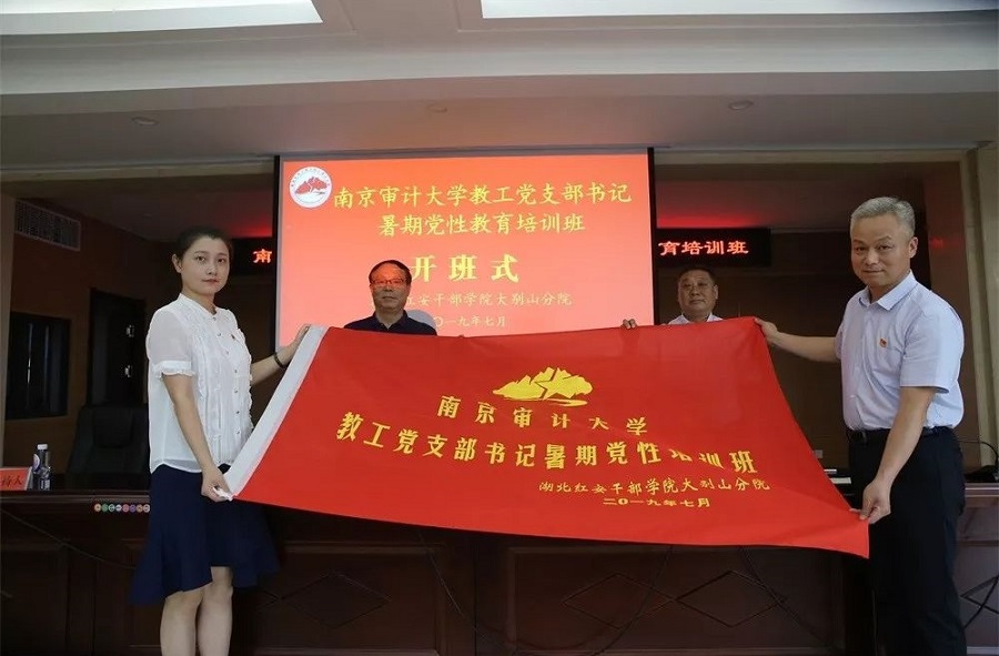 2019年7月15日-19日,南京審計大學(xué)教工黨支部書記2019年暑期黨性教育培訓(xùn)班開班在湖北紅安干部學(xué)院大別山分院舉辦。南京審計大學(xué)黨委副書記、校長劉旺洪,黨委副書記、副校長王會金,副校長俞安平、董必榮,特邀組織員吳朝國等出席,60余名教工黨支部書記、專職組織員和特邀組織員參加。湖北紅安干部學(xué)院大別山分院副院長張盛朝出席開班儀式,并與劉旺洪校長一同授班旗。