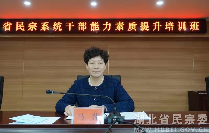2019年11月11日,全省民宗系統(tǒng)干部能力素質(zhì)提升培訓(xùn)班在湖北紅安干部學(xué)院大別山分院正式開班。省民宗委黨組書記、主任馬萍出席開班儀式并作了十九屆四中全會(huì)精神專題輔導(dǎo)報(bào)告。
