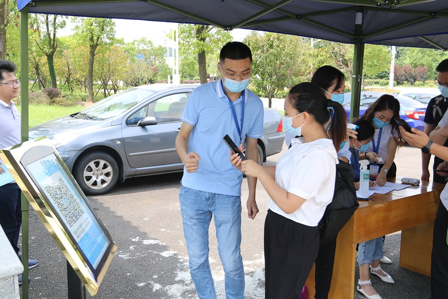 7月23日上午,培訓(xùn)學(xué)員到達(dá)學(xué)院后統(tǒng)一在大門口下車,由學(xué)院工作人員經(jīng)過測溫—消毒—掃碼—登記等疫情防控相關(guān)程序確認(rèn)無異常情況后,全體學(xué)員佩戴口罩憑“健康綠碼”依次有序進(jìn)入院內(nèi)。