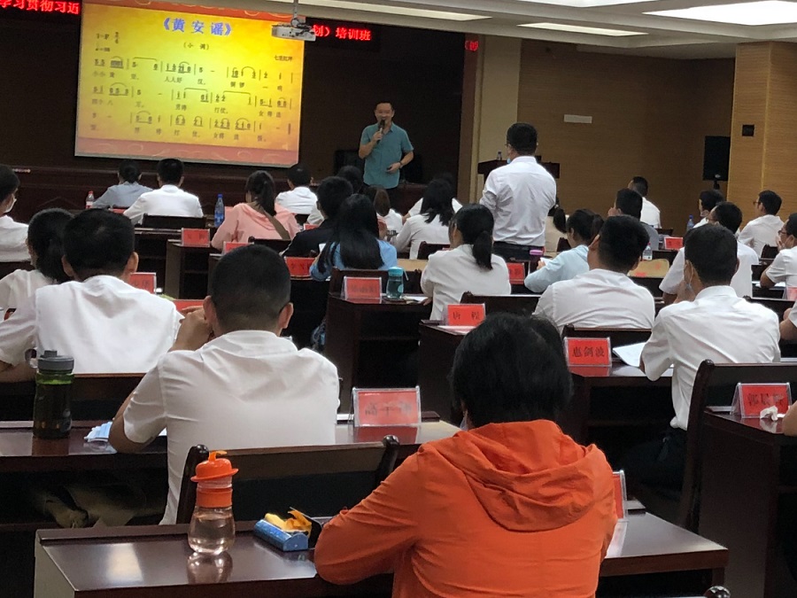 24日晚,紅歌教唱環(huán)節(jié),學(xué)員激情飛揚(yáng),用地道的紅安話逐字逐句學(xué)唱《黃安謠》等紅色歌曲,學(xué)員們被紅安人民革命戰(zhàn)爭年代一心為人民,一心跟黨走,一心干革命,一心奪勝利的精神深深打動。