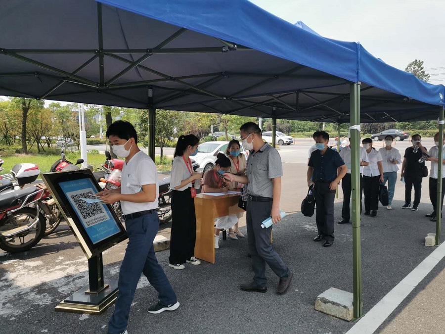 8月5日上午,學員到達教育基地后,頂著37℃的室外高溫在教育基地工作人員的指引下,經過測溫—消毒—掃碼—登記等疫情防控相關程序確認無異常情況后,全體學員佩戴口罩依次有序進入院內報到。培訓班按照疫情防控相關要求做好自我防護措施,并在培訓期間配備一名醫(yī)護人員全程陪同。