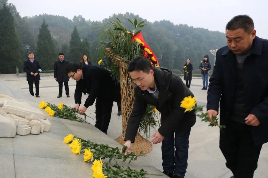 陳敦學(xué)主任一行在紀(jì)念碑廣場、董必武紀(jì)念館、李先念紀(jì)念館、革命烈士紀(jì)念館分別敬獻(xiàn)花籃,舉行三鞠躬儀式,向英烈表達(dá)了深切的緬懷之情。還看望慰問了各館值守人員,并向他們送上新春的祝福。